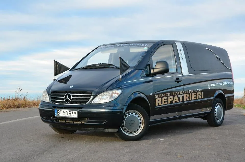 TRANSPORT FUNERAR Transportarea decedatului catre biserica si/sau cimitir cu masini specializate, transport pentru persoane, transport pentru sicriu cu limuzina funerara