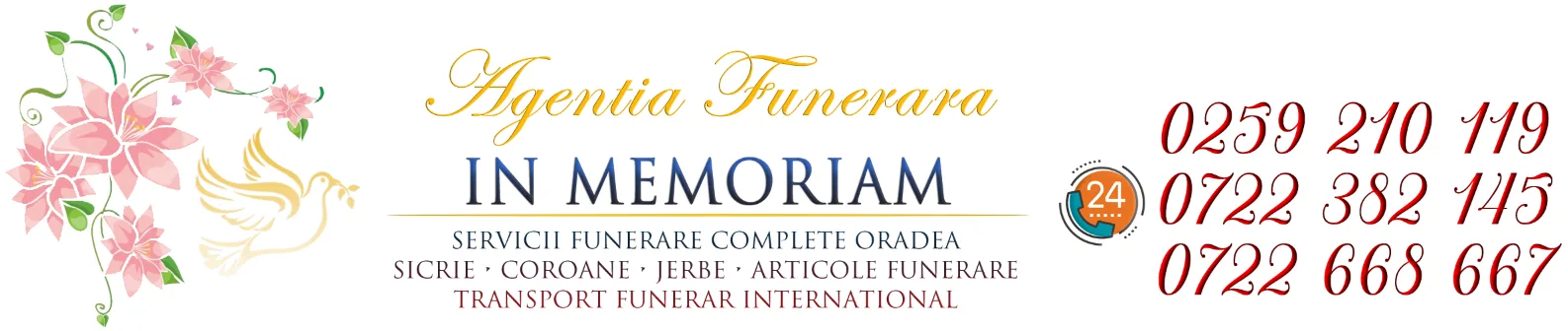 Casele funerare va ofera consiliere si servicii funerare necesare in organizarea ceremoniei de ultim ramas bun pentru ca persoana pierduta sa aiba parte de o inmormantare decenta: sicrie, cruci din lemn si marmura,transport funerar, pachete funerare, coroane si jerbe funerare, aranjamente florare funerare, transport si manipulare sicriu, toaletare decedat, imbalsamare, tanatopraxie, sicrie de lux, ajutor inmormantare, capac frigorific, organizare parastase, accesorii si articole funerare: prosoape, batiste, esarfe, doliu, lumanari, candele, manere sicriu, urne, respete etc, repatriere decedati, organizare parastas pomana