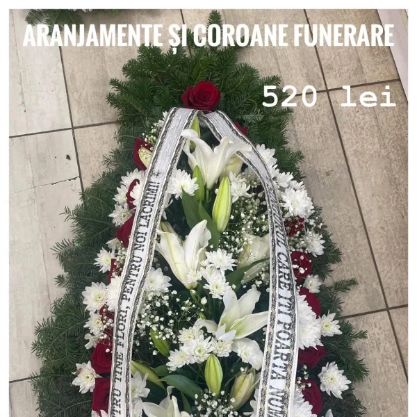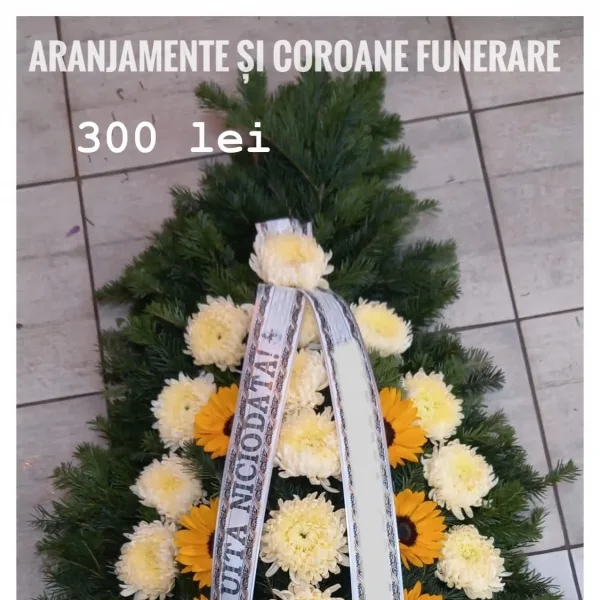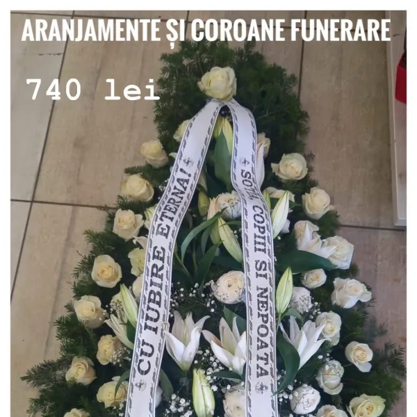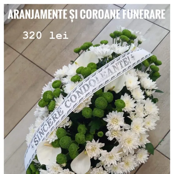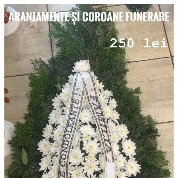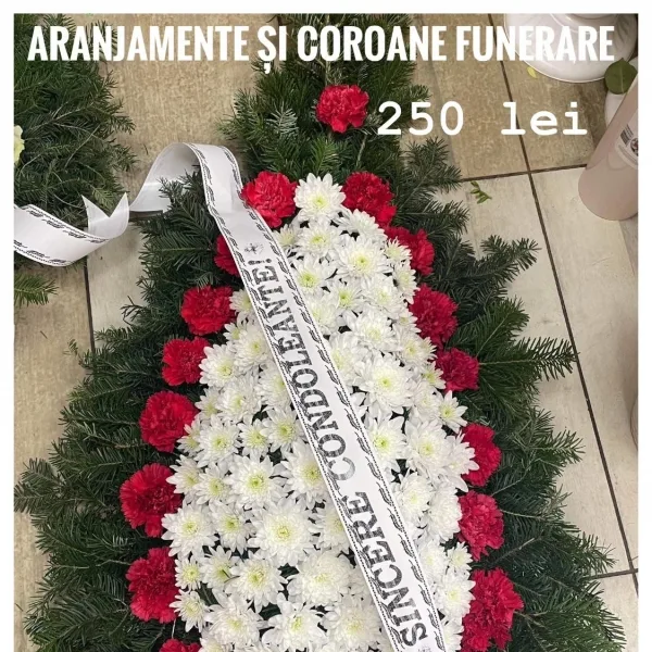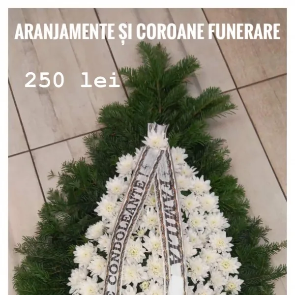 Oferim aranjamente și coroane funerare, naturale și artificiale,coroane clasice din brad sau aranjamente pe burete, diferite compoziții și forme. Timp de execuție: maximum 10 minute de la plasarea comenzii și livrări în maximum 1 oră!