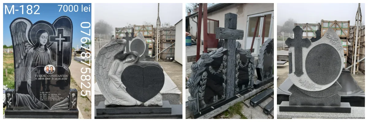 Firmele noastre partenere va ofera lucrari funerare, amenajari si intretinere morminte: constructii monumente funerare marmura si granit, cruci din marmura si granit, gravuri, vaze si felinare marmura si granit, statuete, inscriptionare, poze ceramica, gravare epitafe, accesorii monumente funerare, litere bronz, cruci, seturi decorative, montaj monumente funerare, ingrijire morminte, inhumari, dezhumari, etc., suplimentare cu pamant, eliminam vegetatia nedorita (iarba,arbusti,flori uscate etc.), vopsim cruci din lemn sau metalice, curatarea cavourilor, plantarea florilor, sapatul si greblarea mormantului, candele si aranjamente din flori naturale sau flori artificiale, aplicare scoarta decorativa, accentuarea inscriptionarilor