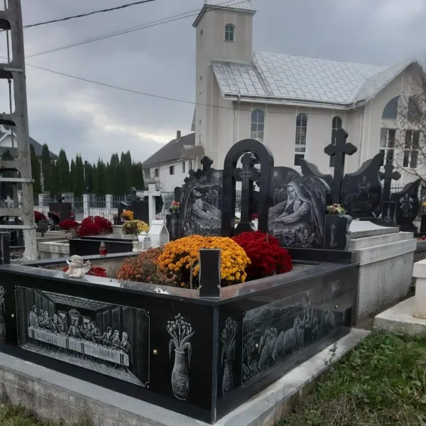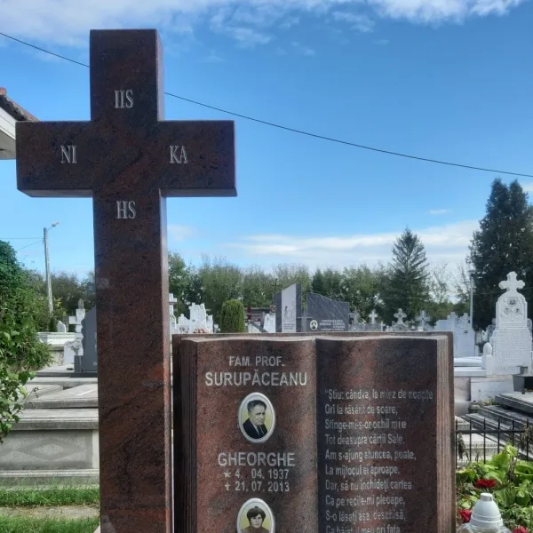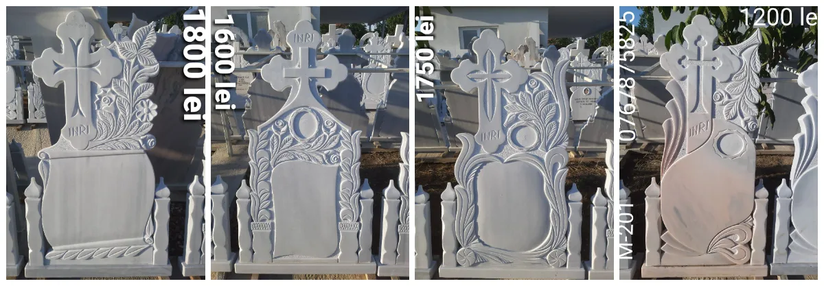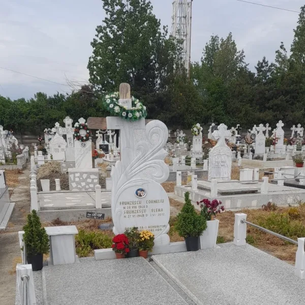 Firmele noastre partenere va ofera lucrari funerare, amenajari si intretinere morminte: constructii monumente funerare marmura si granit, cruci din marmura si granit, gravuri, vaze si felinare marmura si granit, statuete, inscriptionare, poze ceramica, gravare epitafe, accesorii monumente funerare, litere bronz, cruci, seturi decorative, montaj monumente funerare, ingrijire morminte, inhumari, dezhumari, etc., suplimentare cu pamant, eliminam vegetatia nedorita (iarba,arbusti,flori uscate etc.), vopsim cruci din lemn sau metalice, curatarea cavourilor, plantarea florilor, sapatul si greblarea mormantului, candele si aranjamente din flori naturale sau flori artificiale, aplicare scoarta decorativa, accentuarea inscriptionarilor