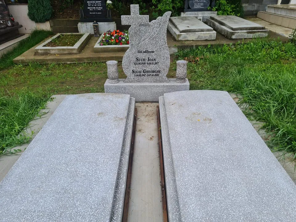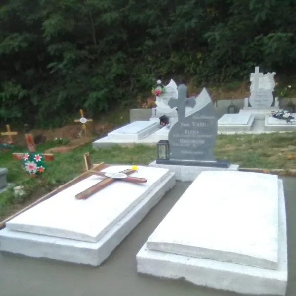 Firmele noastre partenere va ofera lucrari funerare, amenajari si intretinere morminte: constructii monumente funerare marmura si granit, cruci din marmura si granit, gravuri, vaze si felinare marmura si granit, statuete, inscriptionare, poze ceramica, gravare epitafe, accesorii monumente funerare, litere bronz, cruci, seturi decorative, montaj monumente funerare, ingrijire morminte, inhumari, dezhumari, etc., suplimentare cu pamant, eliminam vegetatia nedorita (iarba,arbusti,flori uscate etc.), vopsim cruci din lemn sau metalice, curatarea cavourilor, plantarea florilor, sapatul si greblarea mormantului, candele si aranjamente din flori naturale sau flori artificiale, aplicare scoarta decorativa, accentuarea inscriptionarilor