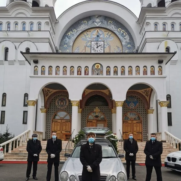 Beneficiati de servicii funerare complete: constatare deces, imbalsamare, toaletare, acte necesare inhumarii, gama variata de sicrie, transport si repatrieri, aranjamente florale, organizari parastase, capac frigorific, cos biserica.