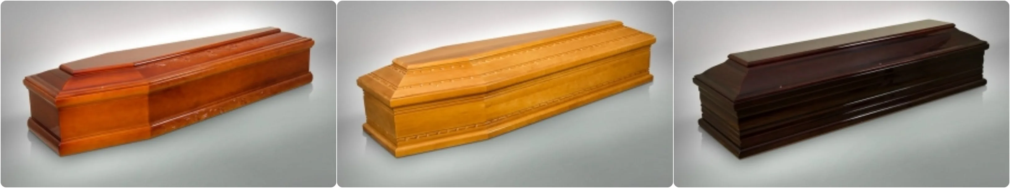 Oferim si o gama larga de sicrie de lux din esenta de stejar, frasin, plop, sau nuc in diverse modele si culori.
