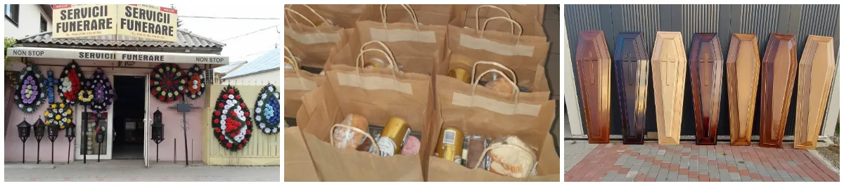 Partenerii portalului Agentie Servicii Funerare va ofera servicii funerare complete, facand astfel mai usoara trecerea peste momentele grele, proceduri legale, eliberare certificat de deces, medic constatare deces, imbalsamare, personal pentru toaletare decedati, agentie pompe funebre, agentie funerara, funerare si servicii funerare, transport funerar intern si international, gama variata de sicrie, personal manipulare sicriu (urcare, coborare), aranjamente florale, coroane, jerbe, iconita, doliu de casa, doliu de piept, verigheta si banut, lumanari decorative, tamaie, carbuni, tamaietor, urne funerare, accesorii funerare, ajutor de inmormantare, pachete funerare, autorizatie depunere capela, respecte, crucifixe, coliva, colaci, organizare parastas, loc de veci, practica cimiteriala, inmormantari, strangerea de oseminte, incinerare, adeverinta SANEPID, certificat de deces, acte necesare inhumarii, repatrieri.