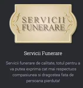 Servicii funerare complete, constatare deces, imbalsamare, toaletare, acte necesare inhumarii, gama variata de sicrie pentru adulti si copii, transport si repatrieri, aranjamente florale, cos biserica.
